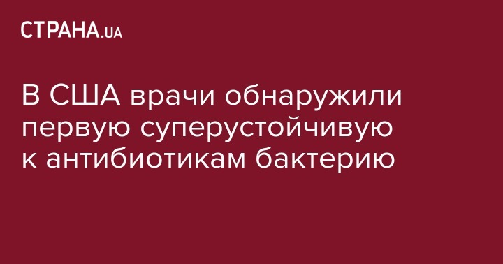 Врачи сообщили об обнаружении в США первой неподдающейся лечению антибиотиками бактерии, передает Reuters.