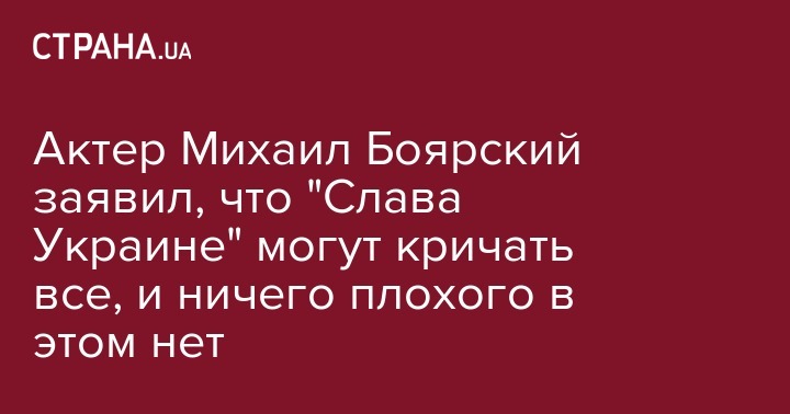 Актер Михаил Боярский заявил, что "Слава Украине" могут кричать все, и ничего плохого в этом нет
