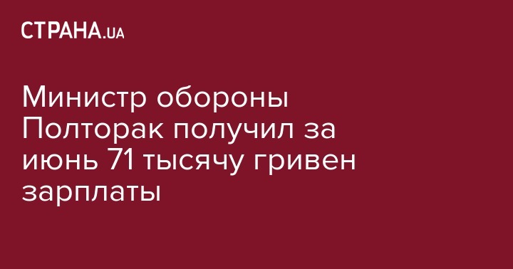 Заработная плата министра обороны Степана Полторака за июнь составила 71,4 тысячи гривен, его заместителей - от 49,9 тысяч до 52,8 тысяч гривен, государственного секретаря министерства - 75,9 тысяч гривен.