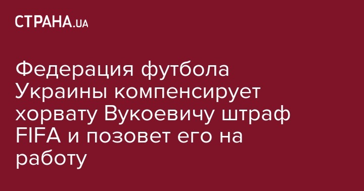 Федерация футбола Украины компенсирует хорвату Вукоевичу штраф FIFA и позовет его на работу