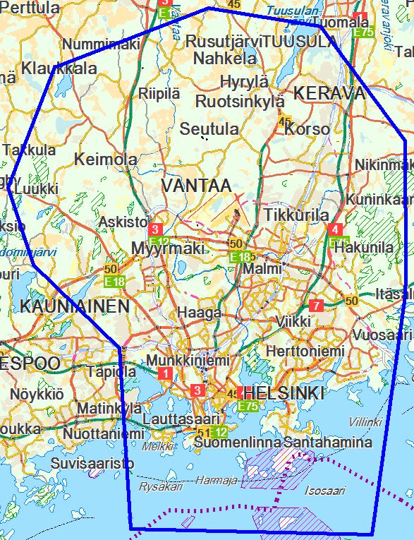 Карта закрытого района, фото: trafi.fi