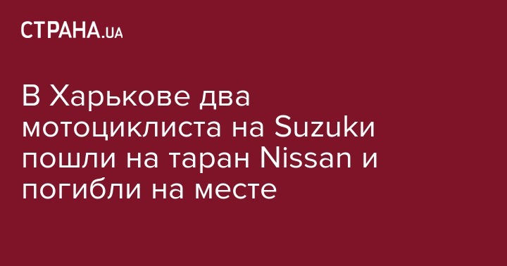 "Информация поступила в полицию около 19.50. Уже установлено, что на улице Мира в Индустриальном районе города столкнулись автомобиль "Nissan Qashqai" и два мотоцикла "Suzukи". От удара один из мотоциклистов погиб на месте, другой - в карете скорой медицинской помощи. Личность одного из погибших водителей установлена, им оказался 37-летний харьковчанин. Личность другого мотоциклиста устанавливается. Водитель автомобиля, 38-летний житель Харькова, госпитализирован в больницу с диагнозом травма правого глаза. В салоне иномарки также находились его жена и двое детей. Никто из них не пострадал", - заявили в пресс-службе харьковской полиции.
