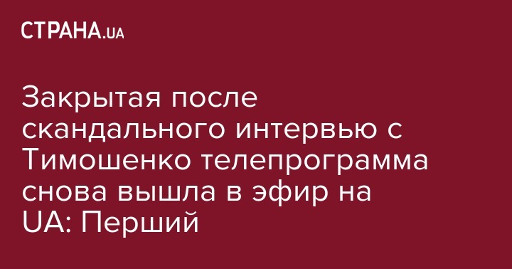 Ранее "Страна" писала о том, что на UA:Перший закрыли программу, в которойТимошенко заявила о планах Порошенко сорвать выборы при помощи войны.