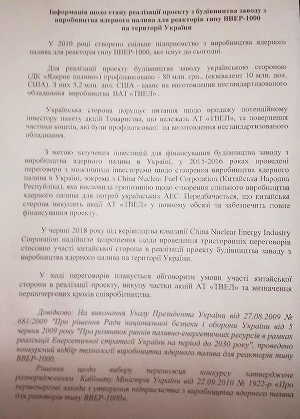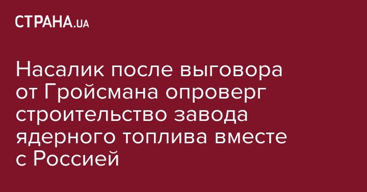 Насалик после выговора от Гройсмана опроверг строительство завода ядерного топлива вместе с Россией
