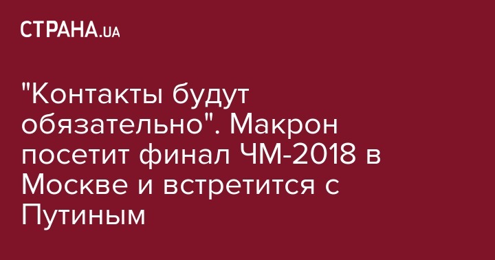 Как сообщает "Газета.ru", пресс-секретарь российского президента Дмитрий Песков заявил, что в связи с приездом французского президента в Россию на финал чемпионата мира-2018 запланированы контакты между ним и Владимиром Путиным: "Контакты будут обязательно", - отметил Песков.