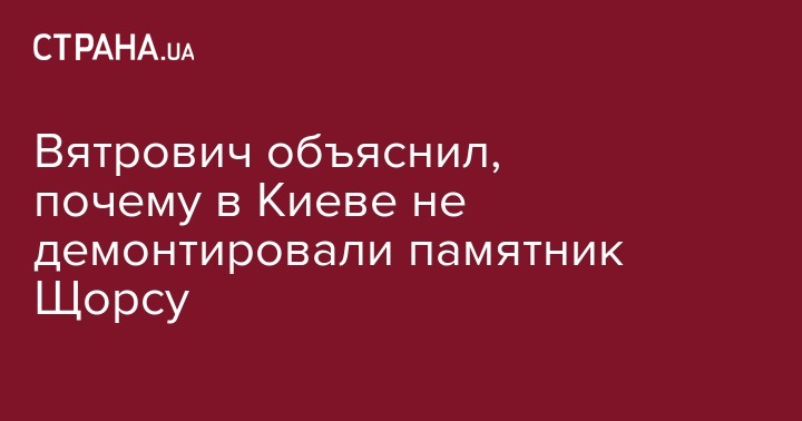 "Относительно памятника Щорсу в Киеве - он должен быть демонтирован, но это вопрос, который остается открытым из-за позиции киевской городской власти. Она неоднократно публично озвучивала, что этот памятник не надо демонтировать - он в Реестре национального культурного наследия, но это совершенно не значит, что его нельзя демонтировать", - отметил Вятрович.