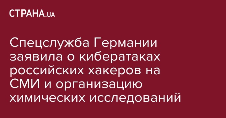 В Германии заявили о кибератаках на немецкие медиакомпании и организацию в сфере химических исследований. Об этом говорится в докладе Федерального ведомства по охране конституции, передает DW