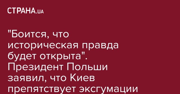 "Если кто-то не хочет согласиться на эксгумацию, то я спрашиваю, почему он боится, что историческая правда благодаря эксгумации будет на самом деле открыта и совершенно доказана, сколько этих людей лежит в этих массовых могилах?", - спросил Дуда.