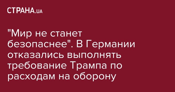 "Мы знаем, что мир и безопасность не даются просто так. Но четыре процента расходов на оборону не сделают наш мир более безопасным. Вместо этого нам необходимо проявлять больше уважения к правилам и международному порядку", - написал Маас в Twitter.