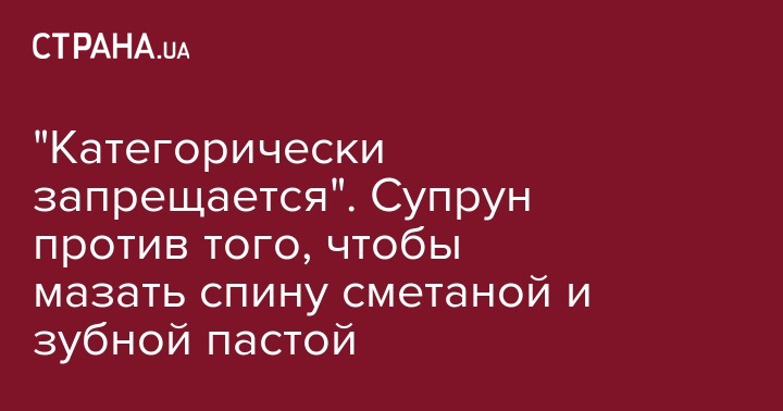 "Категорически запрещается". Супрун против того, чтобы мазать спину сметаной и зубной пастой
