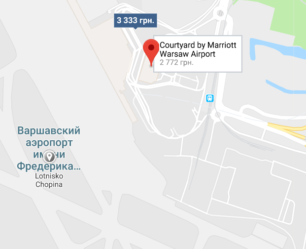 По словам журналиста, гостиница находится прямо возле аэропорта Варшавы.