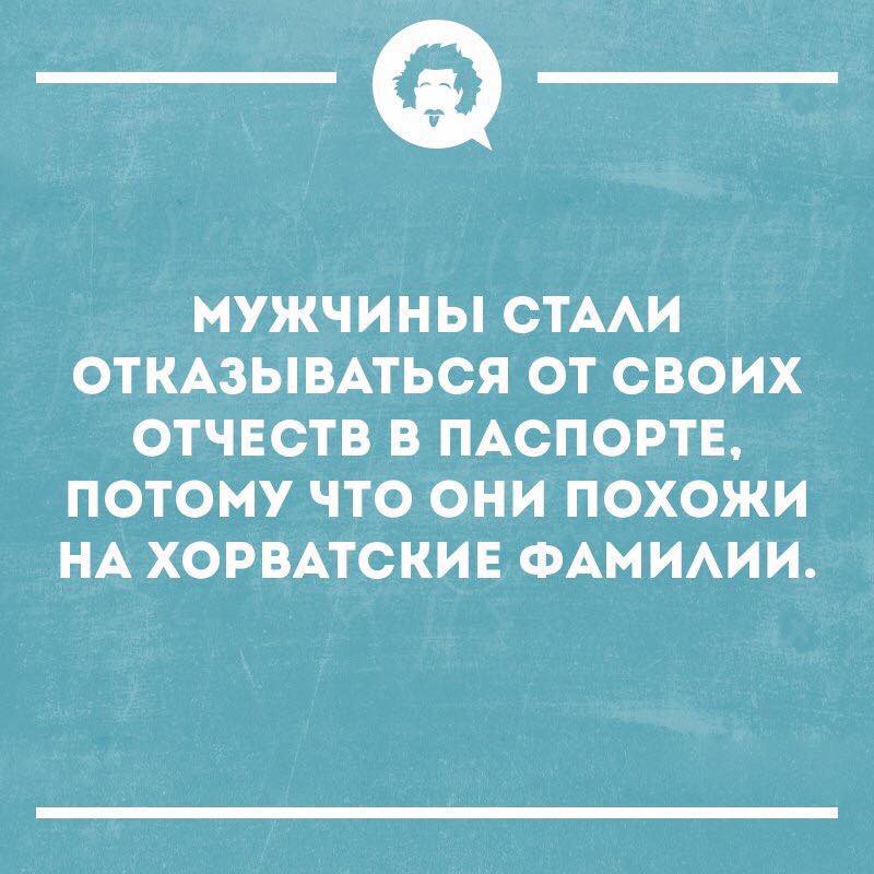 "А вы за кого болеете? — спрашивает девушка в ответ. — За Хорватию. — Значит можно становиться под один зонт, — соглашается девушка. — Странно, пять минут назад болел за Францию", — сдаёт парня его соседка.