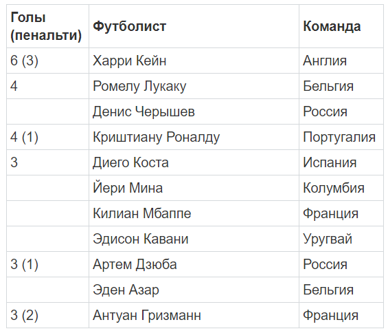 14:44 В списке лучших бомбардиров чемпионата мира произошли небольшие изменения - после матча за третье место в десятку ворвался Эден Азар - капитан сборной Бельгии. После сегодняшней встречи будут изменения?