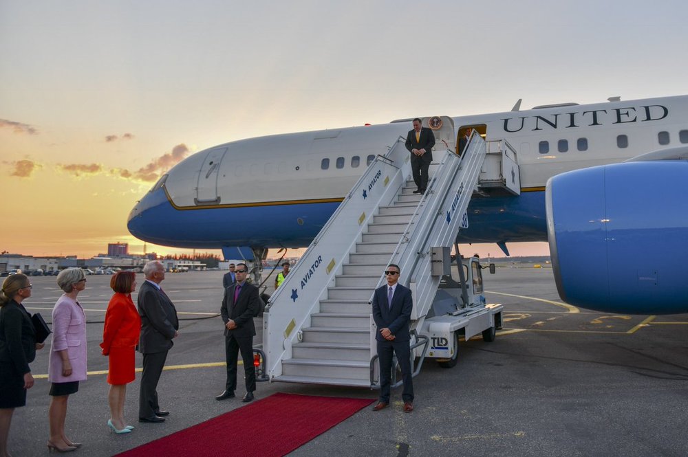Фото Помпео, который спускается с трапа самолета, опубликовано у него в Twitter.