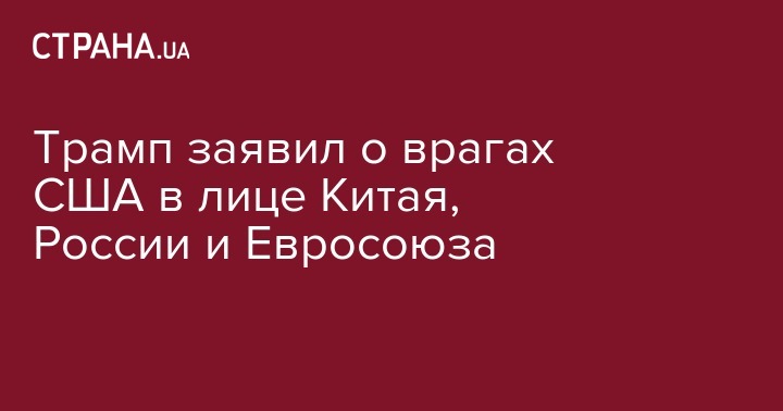 Президент США Дональд Трамп назвал Евросоюз, Россию и Китай врагами США. Об этом сообщает телеканал CBS News.