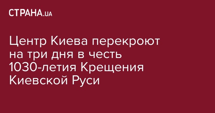 Центр Киева перекроют на три дня в честь 1030-летия Крещения Киевской Руси