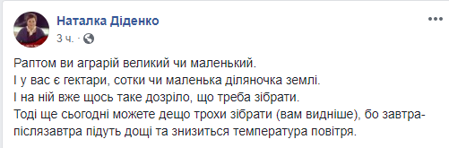 Позже она уточнила, что у аграриев есть еще совсем немного времени, чтобы успеть собрать урожай перед затяжными дождями.