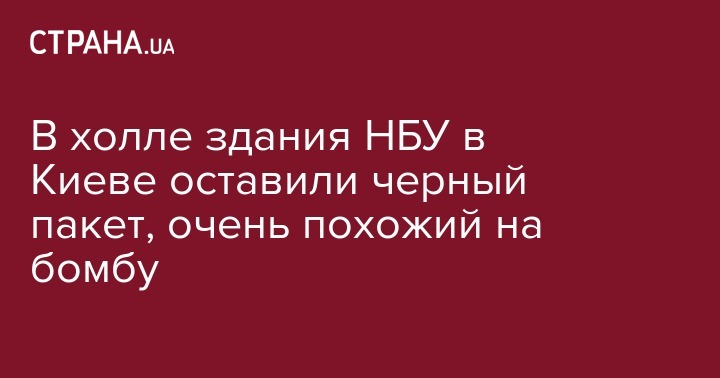 В холле здания НБУ в Киеве оставили черный пакет, очень похожий на бомбу