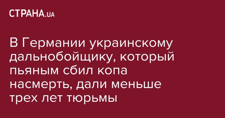 В Германии украинского дальнобойщика, который на фуре пьяным протаранил полицейское авто из-за чего погибла женщина-полицейский, приговорили к двум годам и десяти месяцам лишения свободы. Об этом пишет DW.