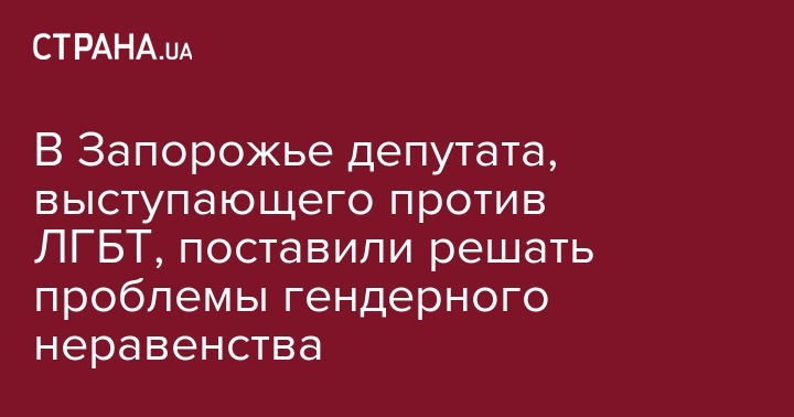 В Запорожье депутата, выступающего против ЛГБТ, поставили решать проблемы гендерного неравенства