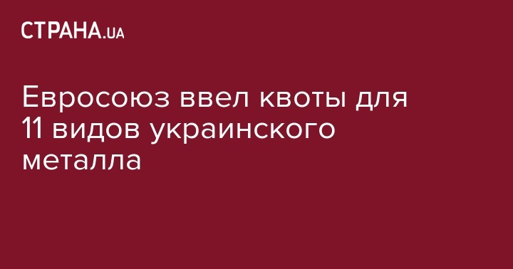 Евросоюз ввел тарифные квоты для 11 видов металлопродукции из Украины. Об этом говорится в сообщении пресс-службы Министерства экономического развития и торговли Украины.