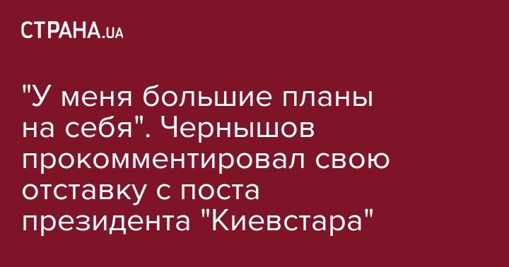 "Что будет дальше? Я спокоен за "Киевстар": еще будет много интересных проектов запущено и объявлено в 2018 году и, особенно, в 2019 - но о них теперь пусть говорит новый СЕО. Я передаю ему растущую компанию в очень хорошем состоянии, и уверен, что "Киевстар" продолжит уверенное движение вперед к новым рекордам, по заветам Джима Коллинза в книге "От хорошего к великому", как это было и с "Карлсберг Украина" после нашего расставания", - подчеркнул Чернышов.