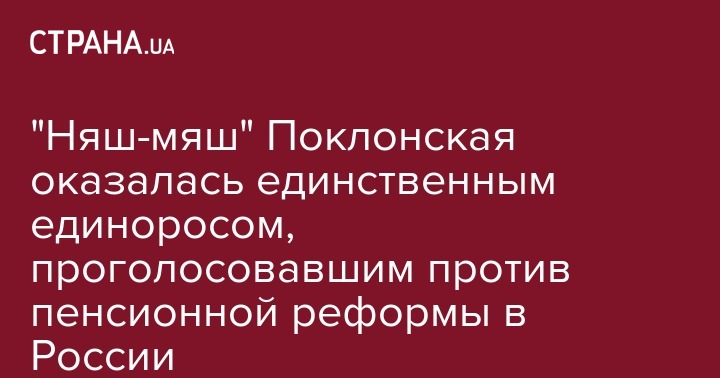 Чуть позже появились списки поименного голосования за правительственный законопроект о повышении пенсионного возраста в России. Единственным депутатом от «Единой России», кто проголосовал сегодня в Госдуме против этой реформы, оказалась Наталья Поклонская.