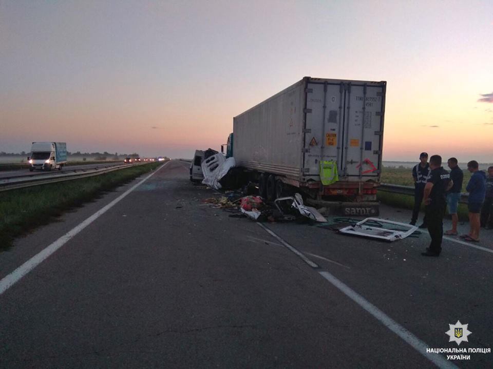 Рейсовый микроавтобус Volkswagen, следовавший по маршруту "Одесса-Гомель" с белорусской регистрацией столкнулся с грузовиком, который, по предварительным данным, стоял с правой стороны проезжей части из-за неисправности.