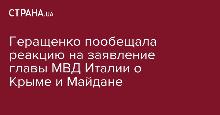 "В ленте новое предательство - министр МВД Италии поддержал крымский "референдум" и посмел (произнести) грязные слова про Революцию Достоинства. Реакция МИД Украины обязательно будет, конечно, но это заявление сделано сейчас не случайно (на фоне уничтожающей критики хельсинского саммита в ЕС и в мировых СМИ)", - заявила Геращенко.