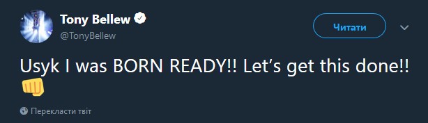 Усик отметил, что готов перейти в супертяжелую весовую категорию и провести бой с 35-летним экс-чемпионом WBC (в 1-й тяжелом весе) британцем Тони Беллью.