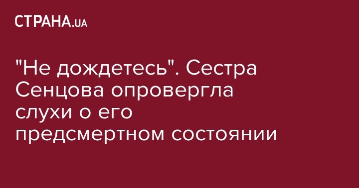 Сестра украинского политзаключенного режиссера Олега Сенцова, который осужден в России по обвинению в терроризме и отбывает наказание в колонии, опровергла информацию о предсмертном состоянии брата. Об этом Наталья Каплан написала на своей странице в Facebook.