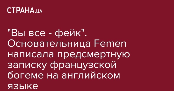 "Вы все - фейк". Основательница Femen написала предсмертную записку французской богеме на английском языке