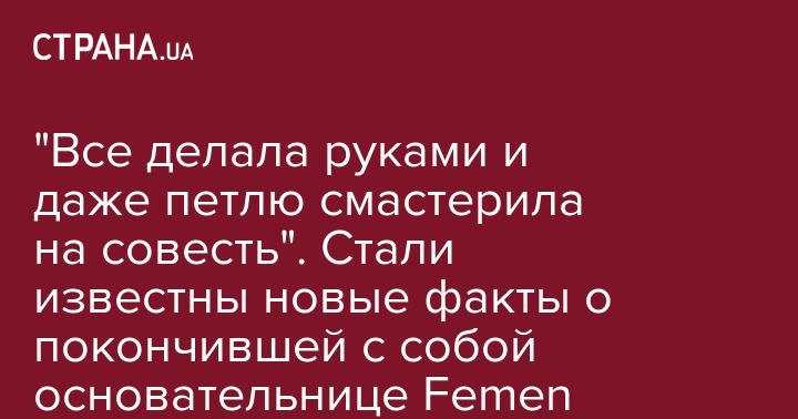 Совершившая самоубийство в Париже 23 июля одна из основательниц Femen Оксана Шачко хорошо мастерила руками и даже петлю сделала на совесть. Такие подробности рассказали "Стране" о Шачко источники в Femen.