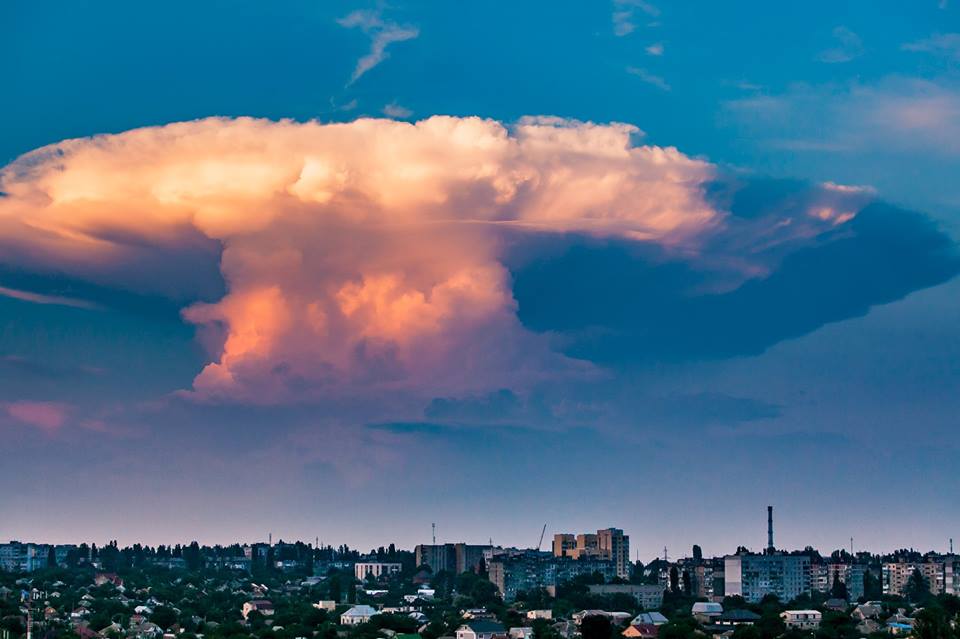 По своей форме облако напоминает так называемый "ядерный гриб". Это явление возникает после ядерного или термоядерного взрыва, и также называется радиоактивным облаком. Некоторые пользователи даже предположили, что фотографии были сделаны на ядерном полигоне. Однако, уникальное облако образовалось из-за длительных дождей, которые льют в Украине не первую неделю.