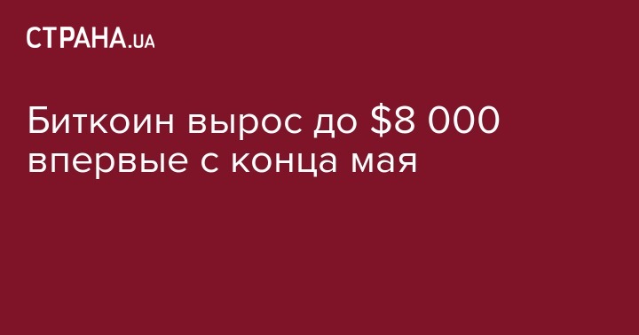 Курс биткоина продолжает расти во вторник и превысил отметку в $8 тыс. впервые c конца мая, сообщает MarketWatch.