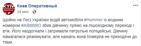 Появились подробности ДТП и дальнейших событий в Киеве на проспекте Леси Украинки, где  водитель, мчась на красный на Нammer, насмерть сбил ребенка.