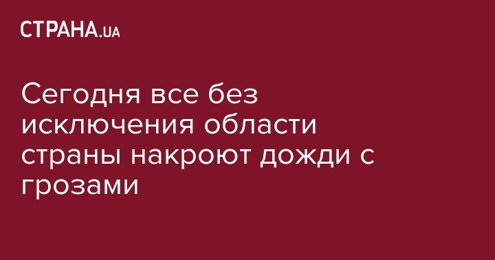 Сегодня, 25 июля по всей территории Украины пройдут дожди с грозами, сообщает "Укргидромецентр".