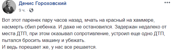 Вчера в Киеве не стало маленькой девочки. Что-то мне подсказывает, что сбивший ее и сбежавший молодчик на «Хаммере» безнадежно болен, возможно, патриот, активист, и все справочки уже рисуются.
