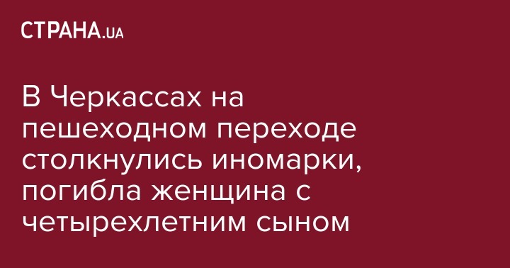 В Черкассах на перекрестке улиц Вячеслава Черновола и Чайковского произошло ДТП, в результате которого погибли женщина и ее четырехлетний сын. Об этом сообщило местное издание Прочерк со ссылкой на патрульную полицию.