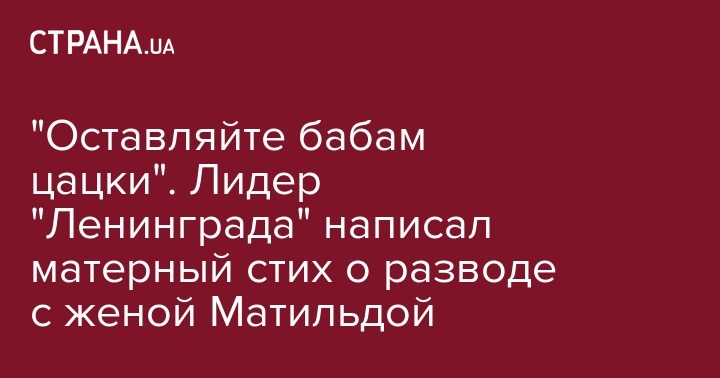"Оставляйте бабам цацки". Лидер "Ленинграда" написал матерный стих о разводе с женой Матильдой