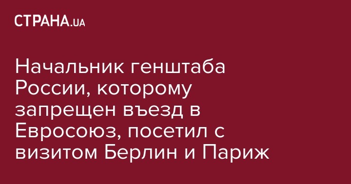 Начальник генштаба России, которому запрещен въезд в Евросоюз, посетил с визитом Берлин и Париж