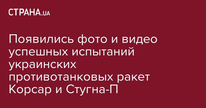 "Расчеты комплексов Корсар и Стугна-П успешно выполнили поставленные перед ними задачи и подтвердили высокую надежность и чрезвычайные тактико-технические характеристики новых противотанковых управляемых ракет, которые уже в ближайшие время усилят подразделения Вооруженных сил Украины", - сказано в сообщении.