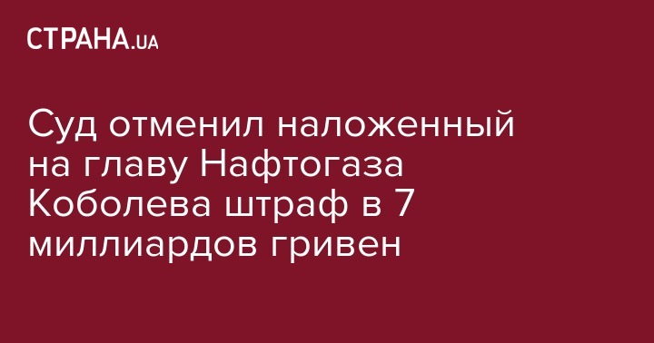 Подольский райсуд г. Киева отменил постановление Энергетической таможни Государственной фискальной службы Украины о начислении главе НАК "Нафтогаз Украины" Андрею Коболеву штрафа в размере 7,027 миллиарда гривен за нарушение таможенных правил. Об этом говорится в решении суда, пишет Укринформ.