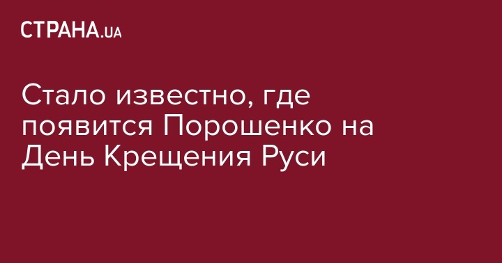 28 июля 2018 Президент Петр Порошенко примет участие в мероприятиях по случаю 1030-летия крещения Киевской Руси - Украины. Об этом сообщает пресс-служба главы государства.