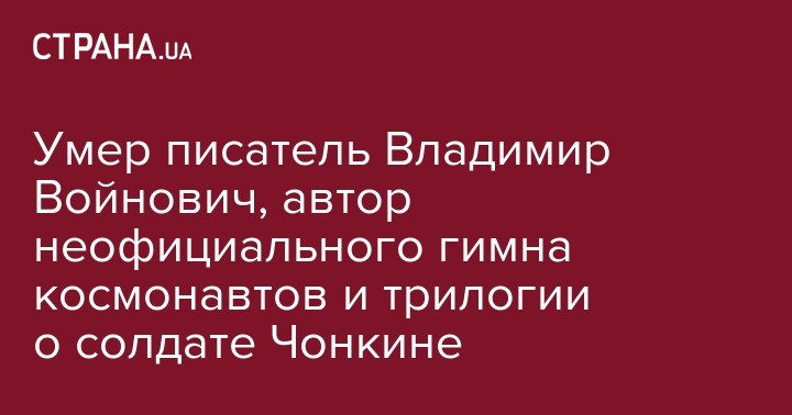 Войнович известен своей ироничной антиутопией "Москва 2042", а также трилогией о солдате Иване Чонкине. За роман "Монументальная пропаганда" он получил Государственную премию. Его песня "Четырнадцать минут до старта" стала неофициальным гимном советских космонавтов.