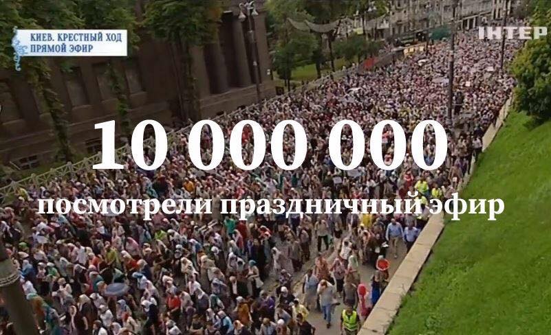 "10 миллионов телезрителей посмотрели специальный эфир "Интера" ко Дню Крещения Руси", - написано в сообщении.