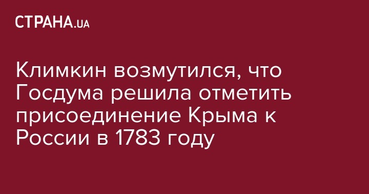 Министр иностранных дел Павел Климкин возмутился принятием российским парламентом постановления, который провозглашает 19 апреля "Днем принятия Крыма, Тамани и Кубани в состав Российской империи (1783 год)". Об этом министр написал в своем Twitter.