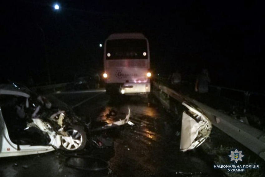 Автобус ехал без пассажиров, за рулем находился 28-летний житель города Винница. "В результате ДТП водитель легковушки получил телесные повреждения в виде закрытых переломов правого бедра и руки, а также черепно-мозговой травмы. Мужчину в тяжелом состоянии доставили в Староконстантиновскую центральную районную больницу. Две пассажирки автомобиля - 29-летняя женщина и ее 58-летняя мать от полученных травм скончались на месте происшествия", - заявили в ведомстве.