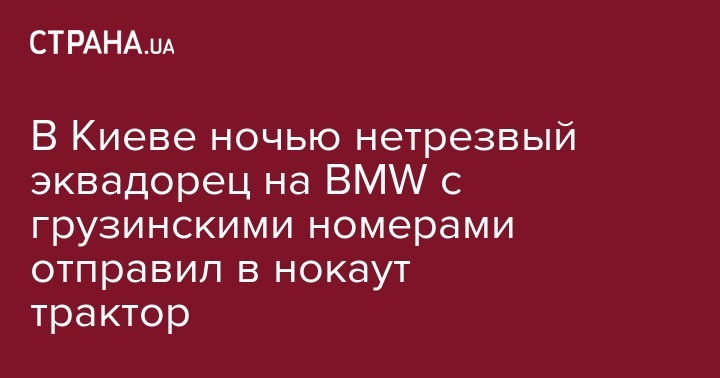 В Киеве ночью нетрезвый эквадорец на BMW с грузинскими номерами отправил в нокаут трактор