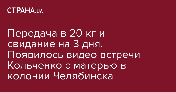 "Длительные свидания разрешены раз в четыре месяца, но по словам Ларисы Кольченко, увидеть сына она смогла впервые за девять месяцев. Три дня они проведут в специальном номере для встреч. С собой Лариса Кольченко привезла двадцатикилограммовую передачу", - отмечено в сообщении.